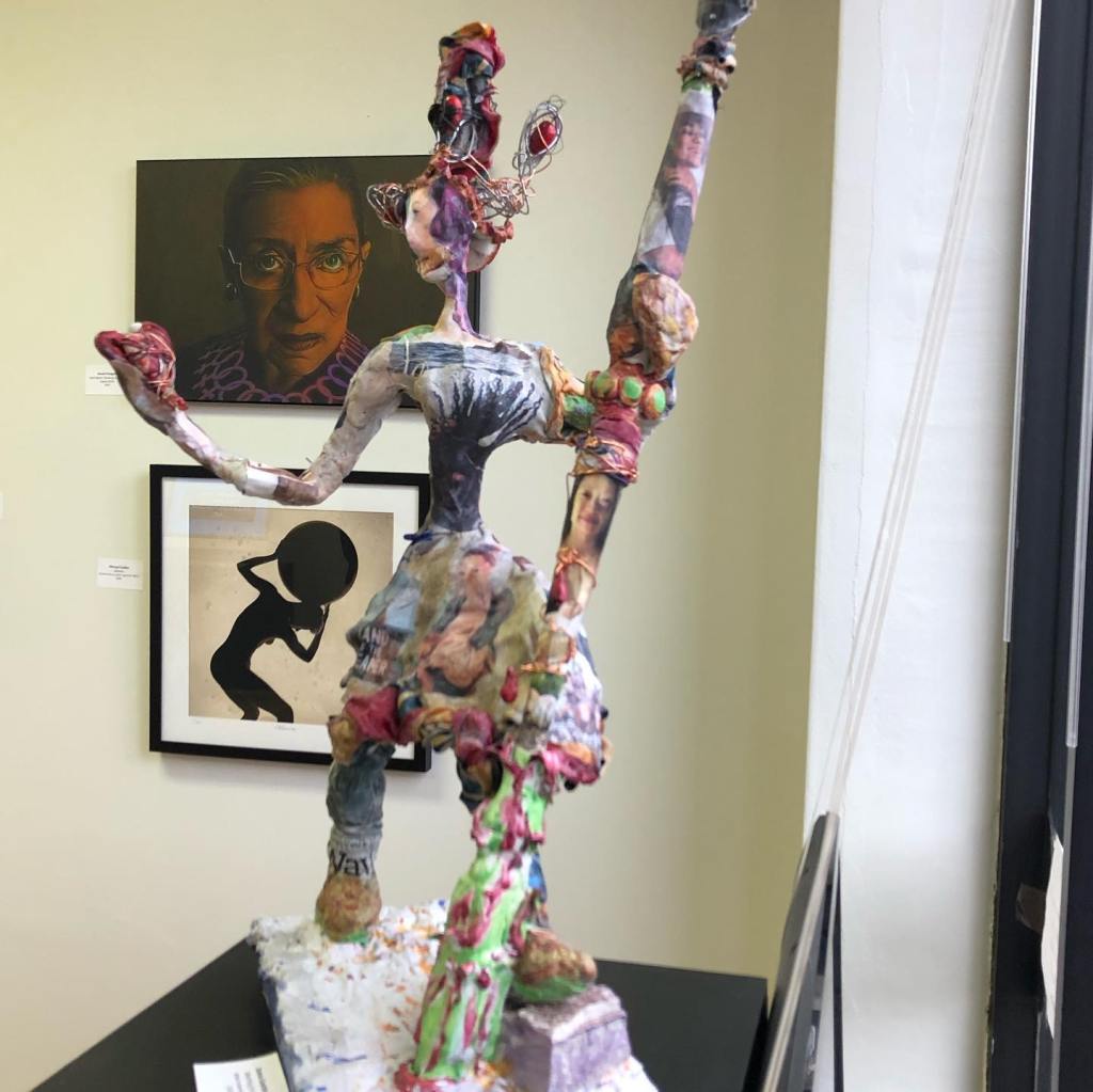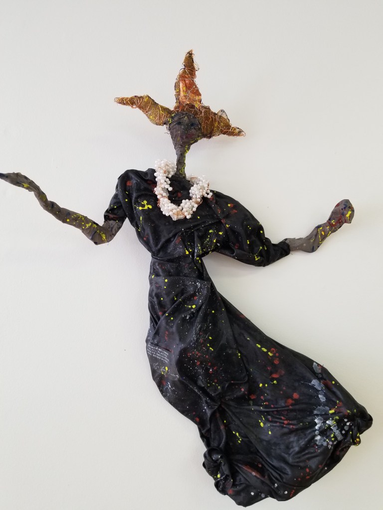 Marching for Peace was created in 2020, actually finished on August 10th, and came from my heart. At this time of social unrest, the global health crisis a warrior woman came into my consciousness, her powerful presence took on a sculptural form. I took a deep breath and used different techniques to express my deep feeling for this expression of women’s power. She manifested as a Mother, who felt her love as deeply as her wish to protect the vulnerable and fight injustice. She represents women of every color, size and age. She is a warrior for us all.